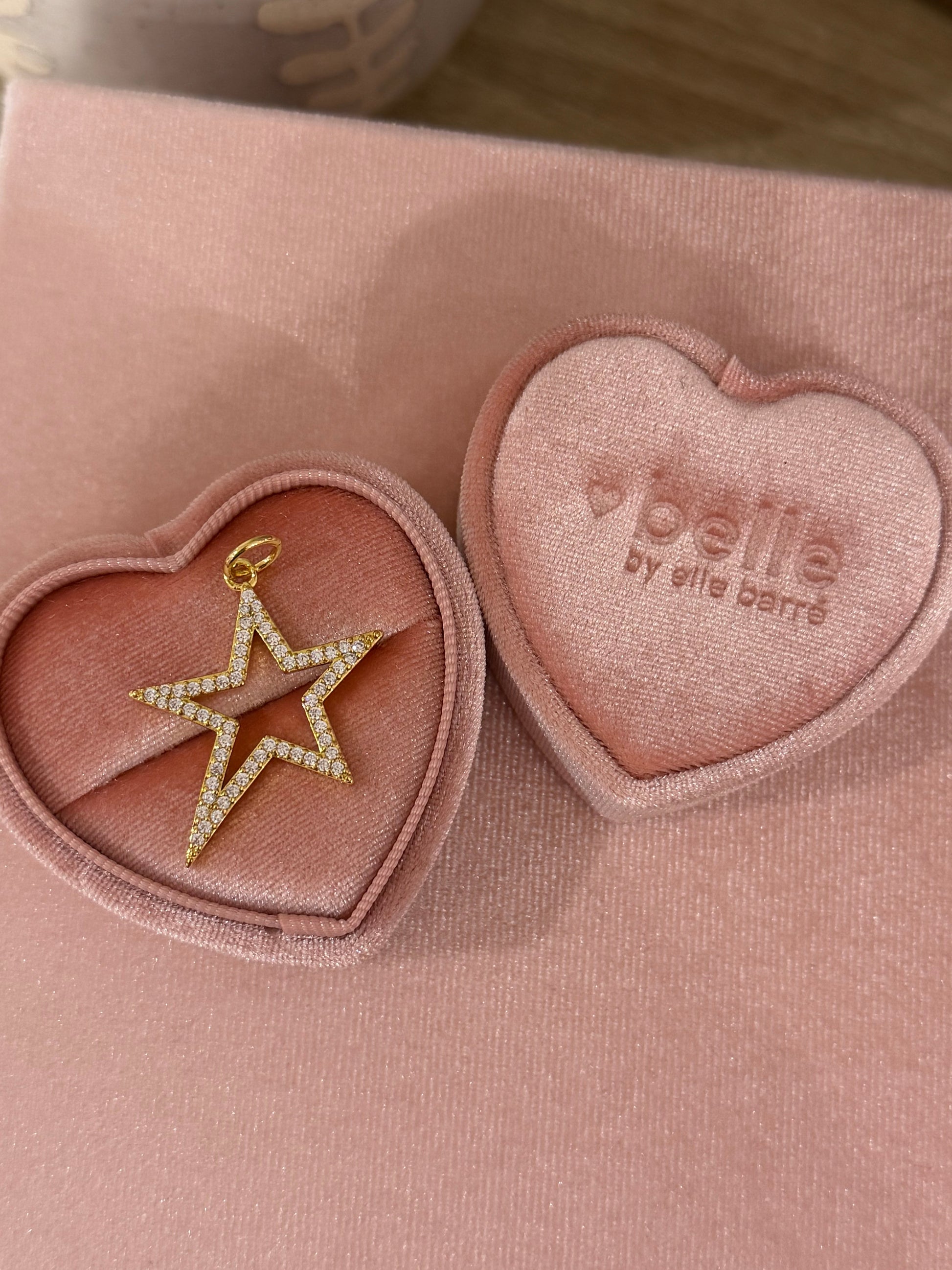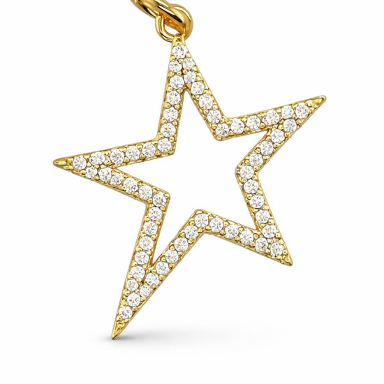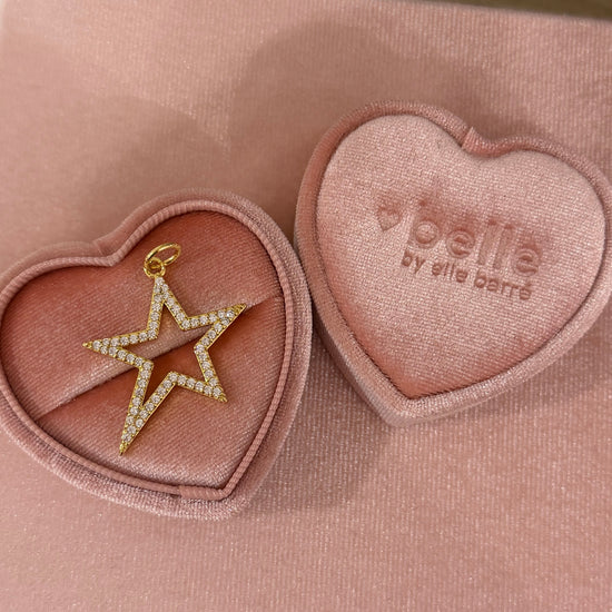 Shine bright with this statement star charm, featuring delicate pavé-set CZ stones that catch the light from every angle. Bold yet timeless, it’s the perfect piece to elevate your everyday stack. Finished in radiant 14K gold plating, designed to be water resistant, and sealed with a protective e-coating.