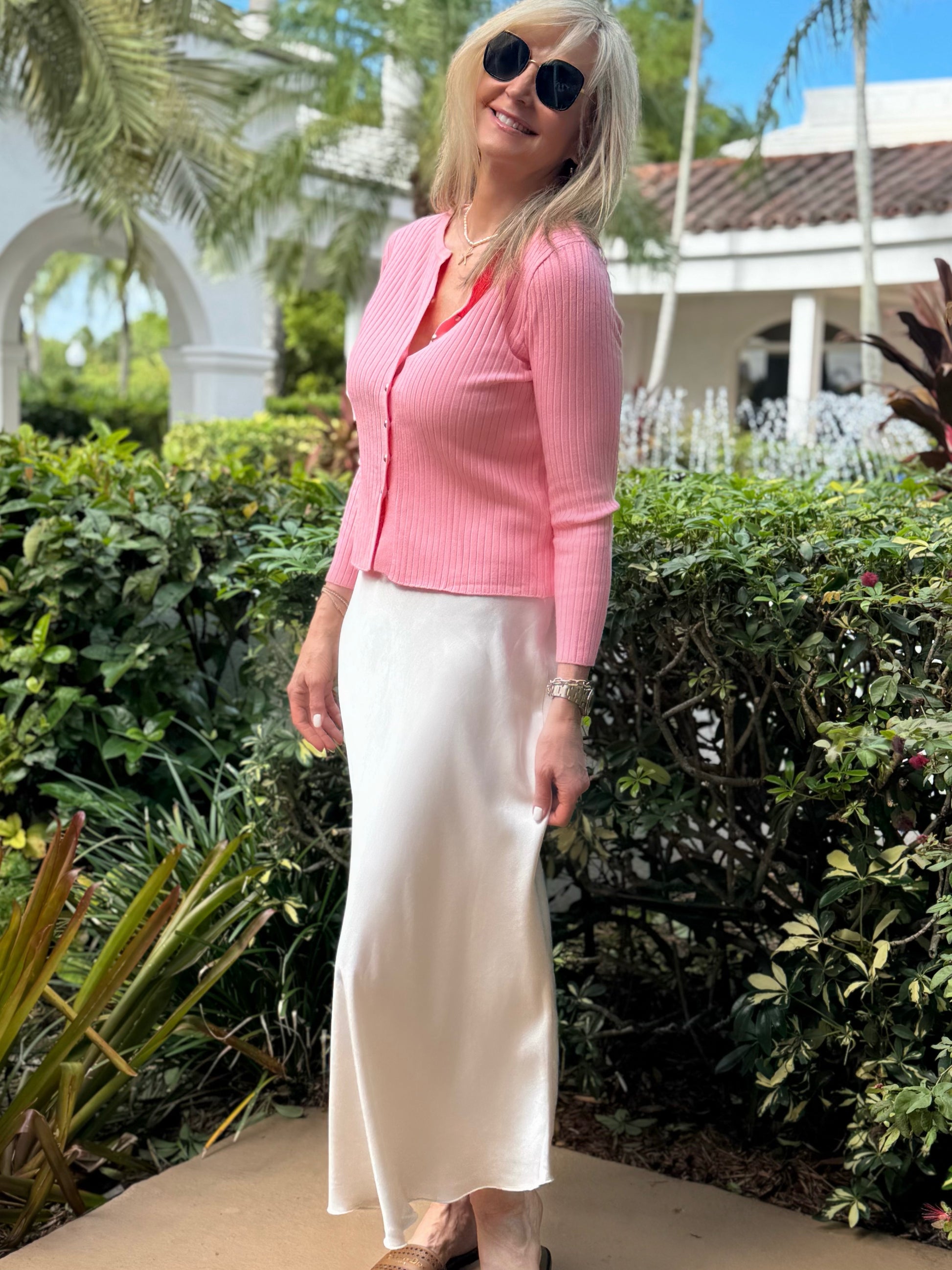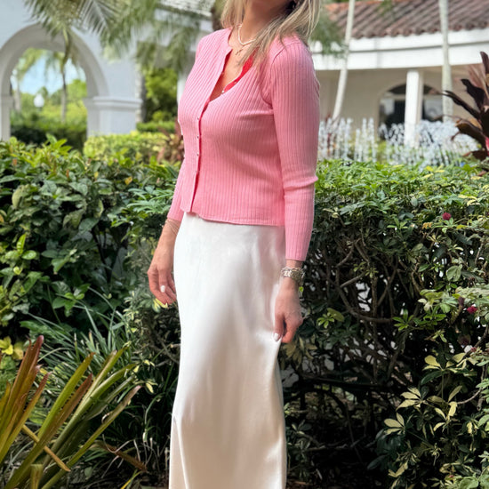 Effortless elegance, made to move with you. This satin midi skirt features a soft, fluid drape that skims the body beautifully without clinging. The subtle sheen adds a polished touch, making it perfect for both everyday wear and special occasions. Designed with a comfortable, easy pull-on waist and a timeless midi length, it pairs seamlessly with knits, blouses, or a simple tee.