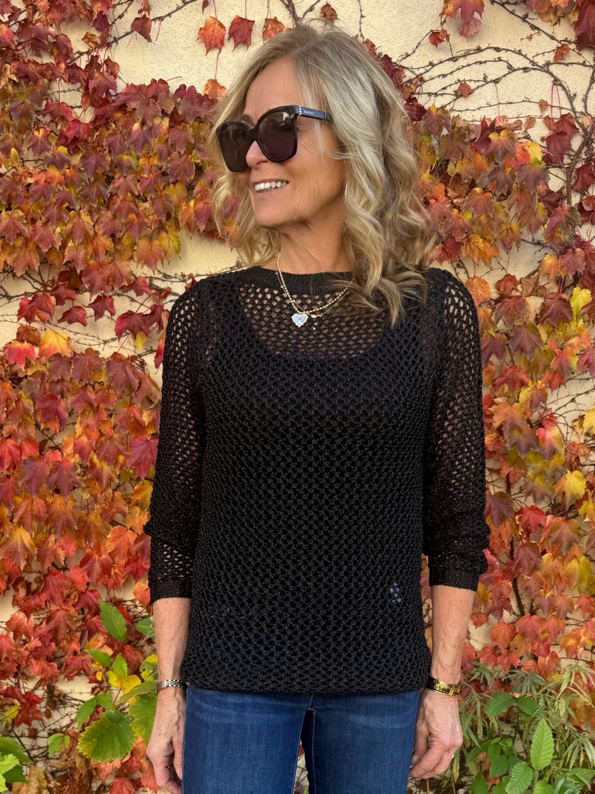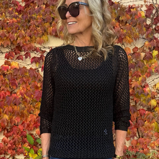 How stunning is this crochet style laying top! It is so expensive looking,(at a fabulously competitive price)! It has glitter lurex threading but is perfectly appropriate for 4 season wear! You can dress up any outfit but adding this pretty top, and can wear it with anything from leggings, jeans, all pants and skirts! It is a practical addition to any wardrobe!
