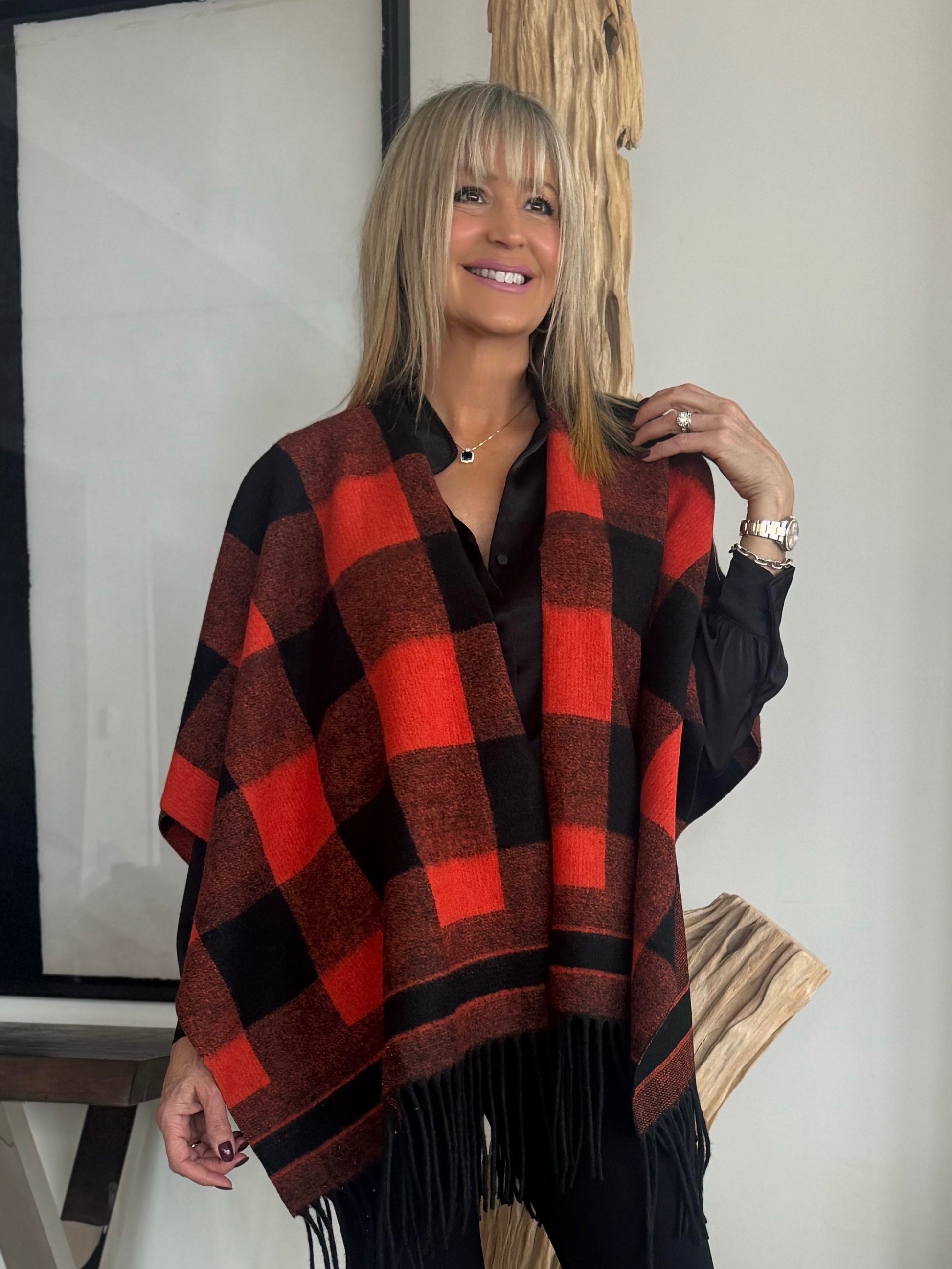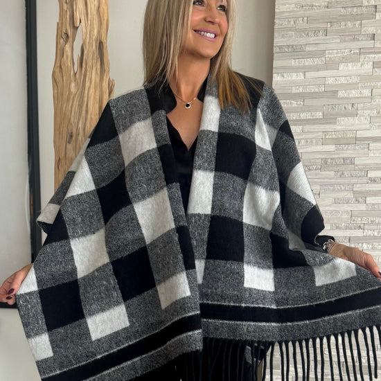 Wrap yourself in timeless elegance with this beautiful plaid shawl. Designed with a classic check pattern and soft fringe detailing, it adds warmth and sophistication to any outfit. Perfect for layering over your favorite sweaters or coats, this versatile piece effortlessly elevates your everyday style from casual outings to chic evenings out.