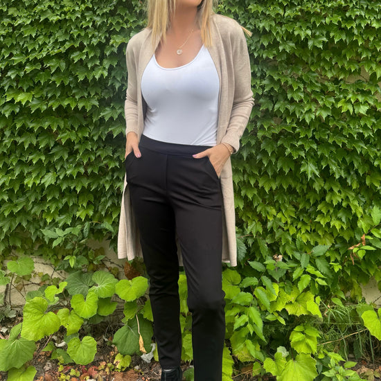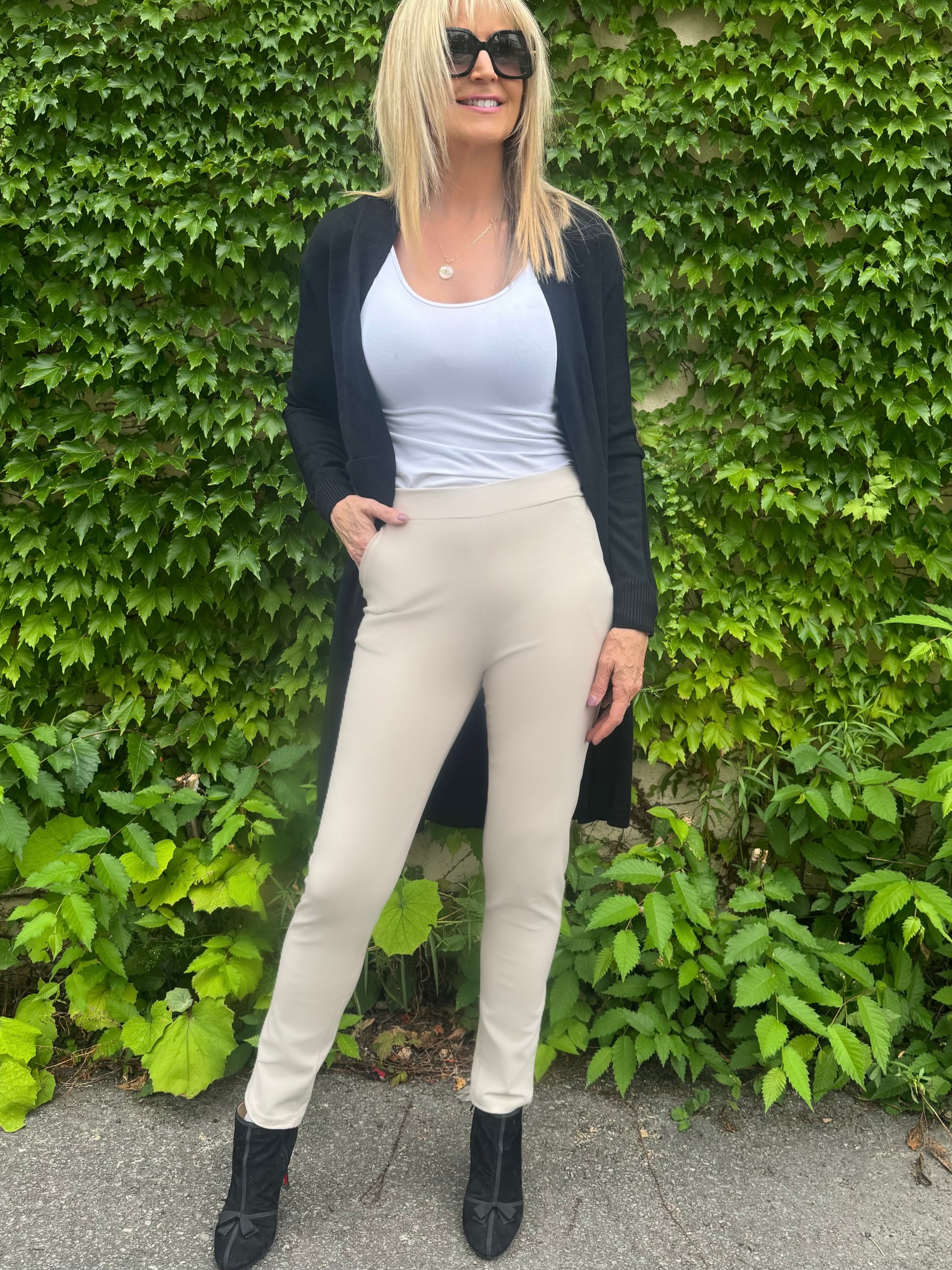 Super soft pants featuring front pockets and an elastic waistband at the back for a comfortable fit. These versatile pants can be dressed up or down and come in gorgeous neutral colors you’ll love. A true wardrobe essential!