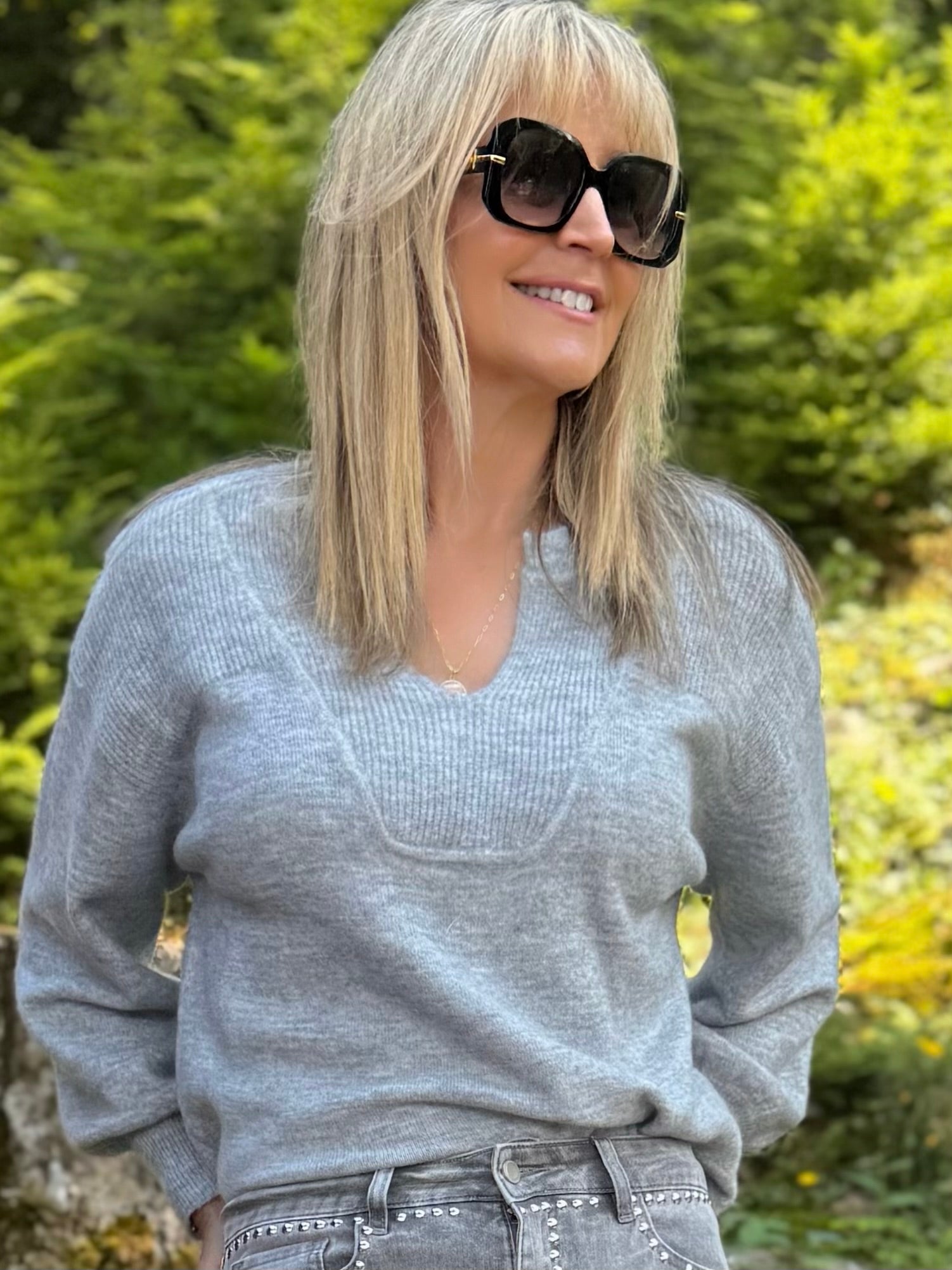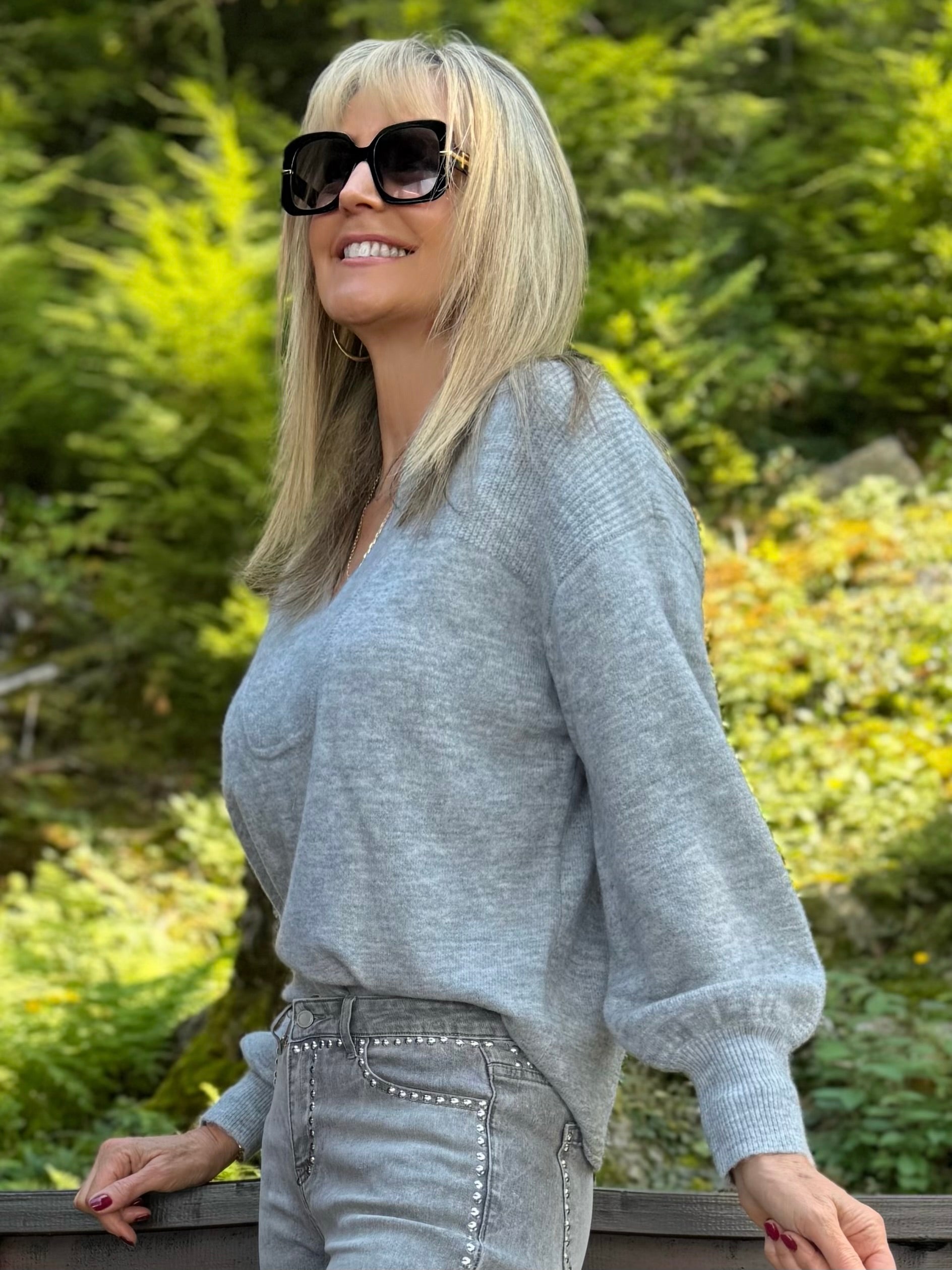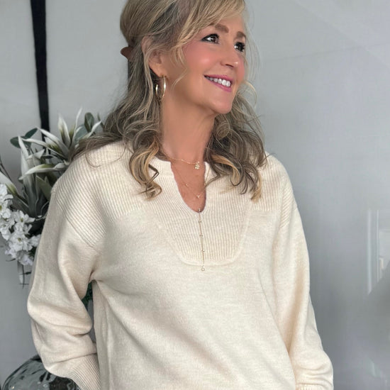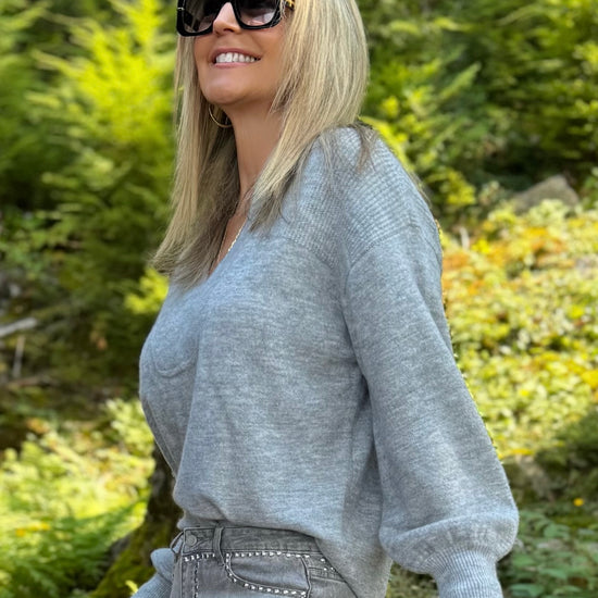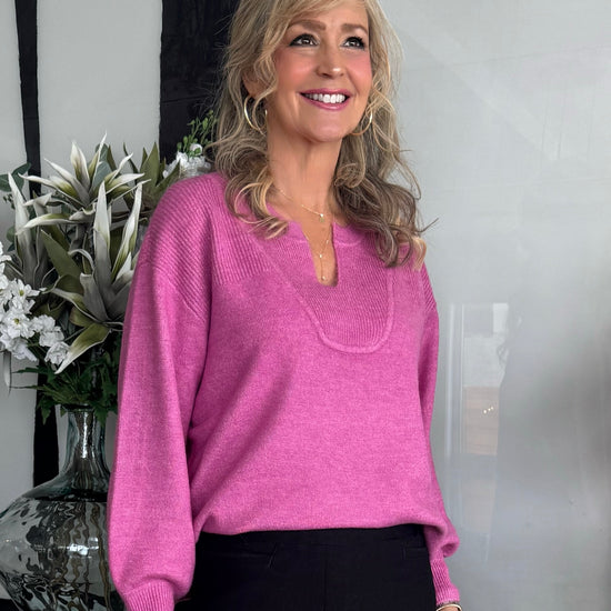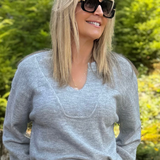 Stay effortlessly cozy in this relaxed sweater, crafted from soft blend yarn for a touch of luxurious warmth. The structured notch neckline frames the face with refined charm, while the puckered detail at the cuffs adds a flattering, tailored touch and allows for easy sleeve adjustment.