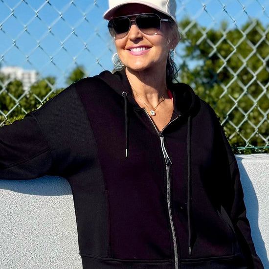 Experience unbeatable comfort and versatile style with this Techno Lux hooded cardigan. Designed for movement, its smooth stretch scuba knit and full-zip silhouette make it easy to layer. Perfect for both active days and laid-back moments.
