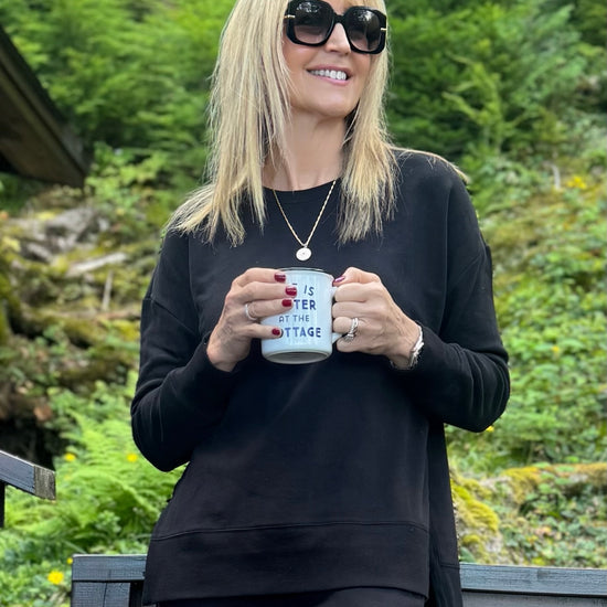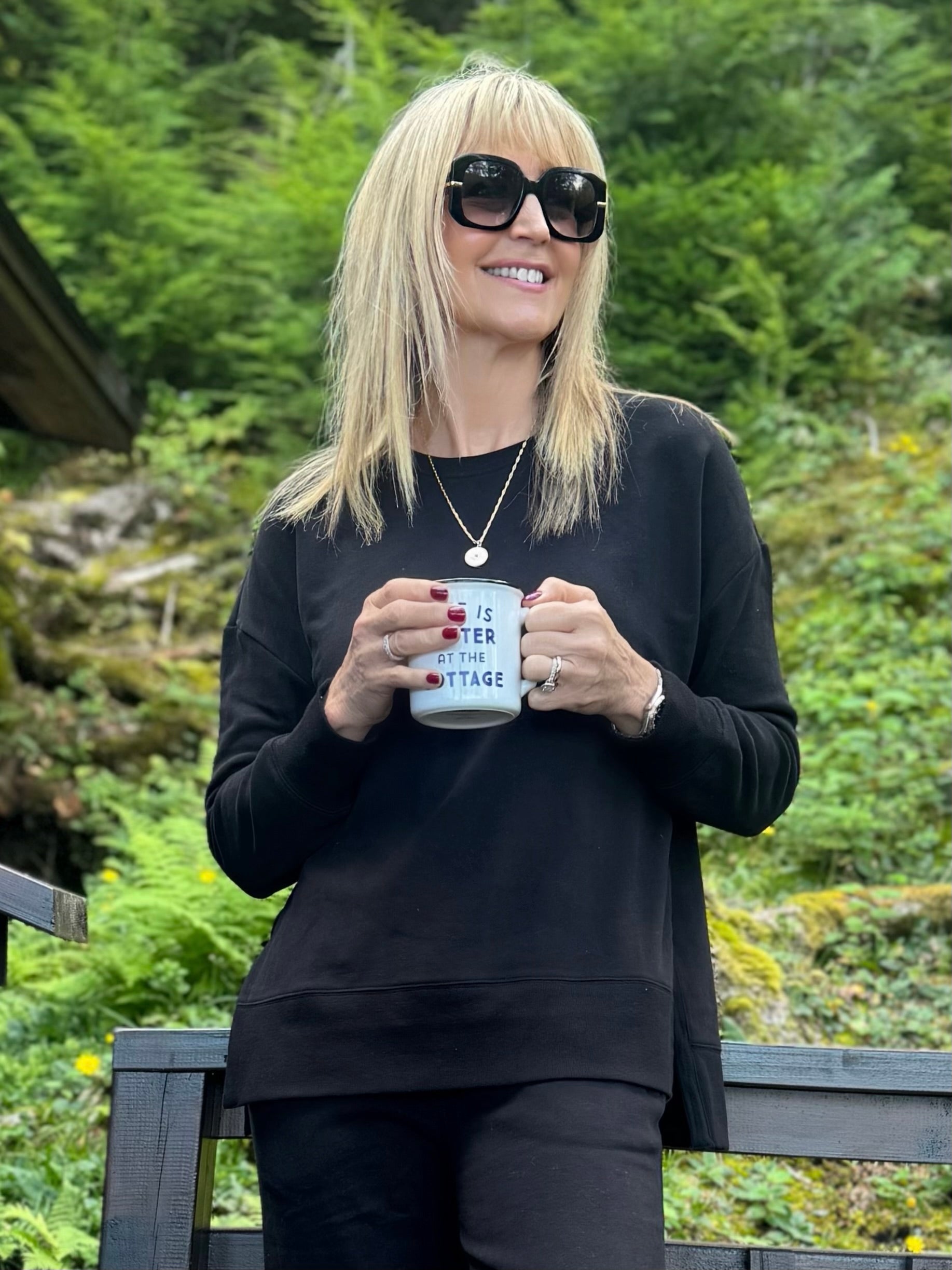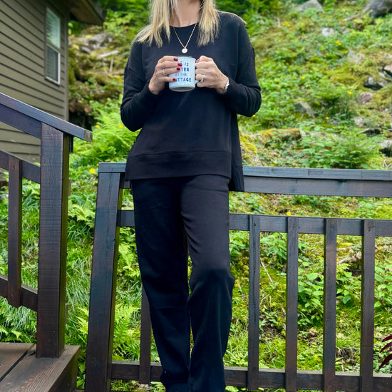 What an incredibly soft and luxurious fabrication! You will adore the casual cool vibes and style of this long sleeve crew neck top with high low detail and fashionable side slits! Wear it with matching bottoms or your fave jeans or trousers, either way you will adore the coziness!!
