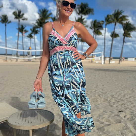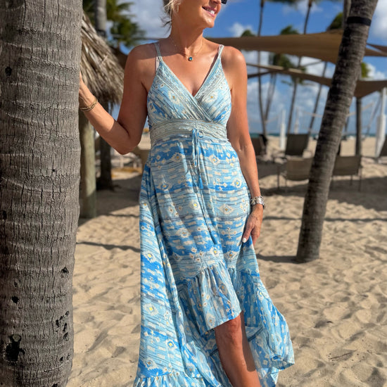 Stunning, flattering, and incredibly comfortable! This dress is guaranteed to wow! From our beloved Maui Collection, it’s lightweight with breathtaking prints and an effortlessly easy-to-wear silhouette. Featuring adjustable straps, a fully elasticized smocked back, and a slimming under-bust band that beautifully enhances your shape. Finished with a gorgeous hi-low hem and feminine ruffle detailing, this dress moves with you and feels just as good as it looks. PREORDER FOR MID JAN